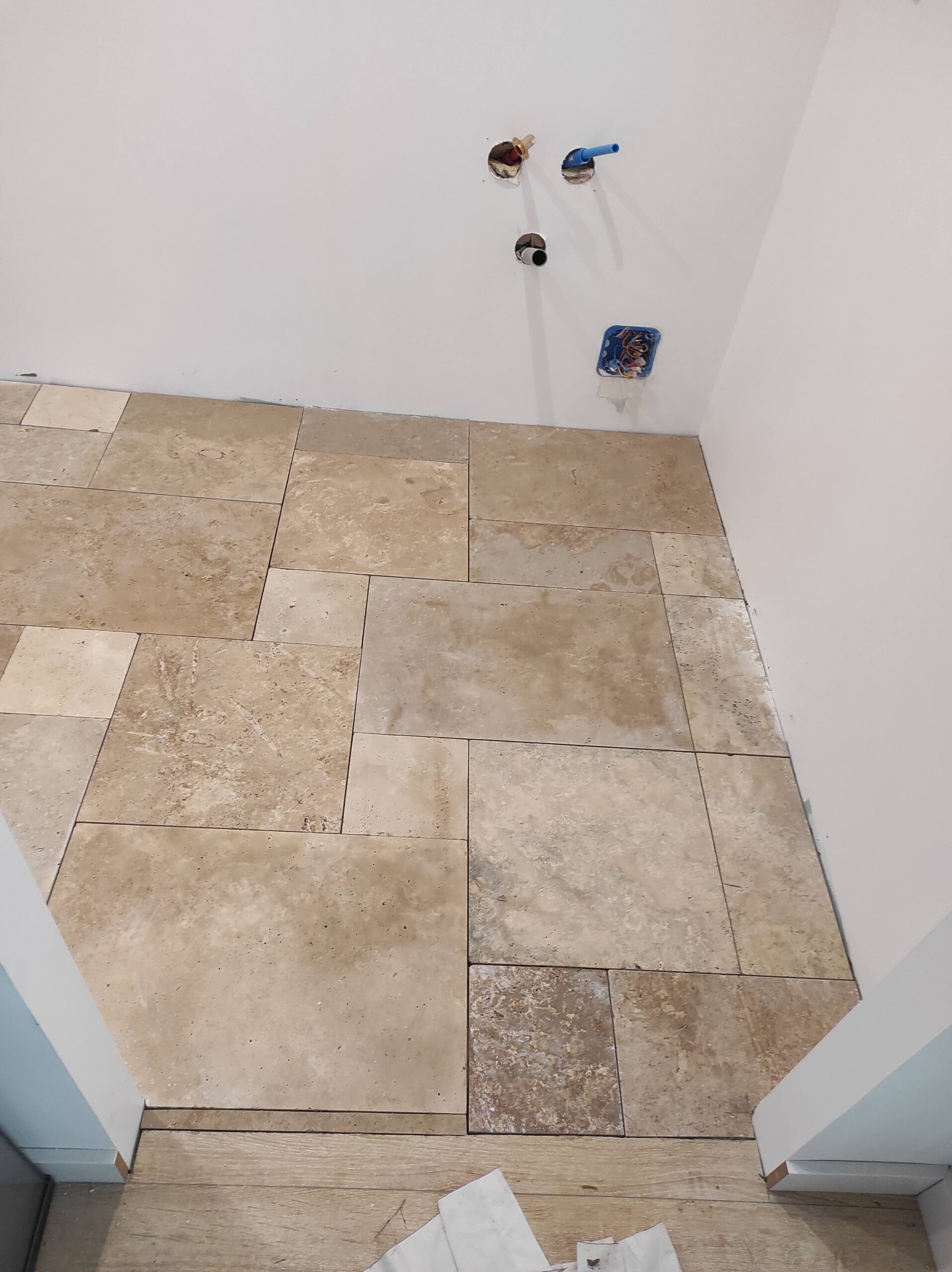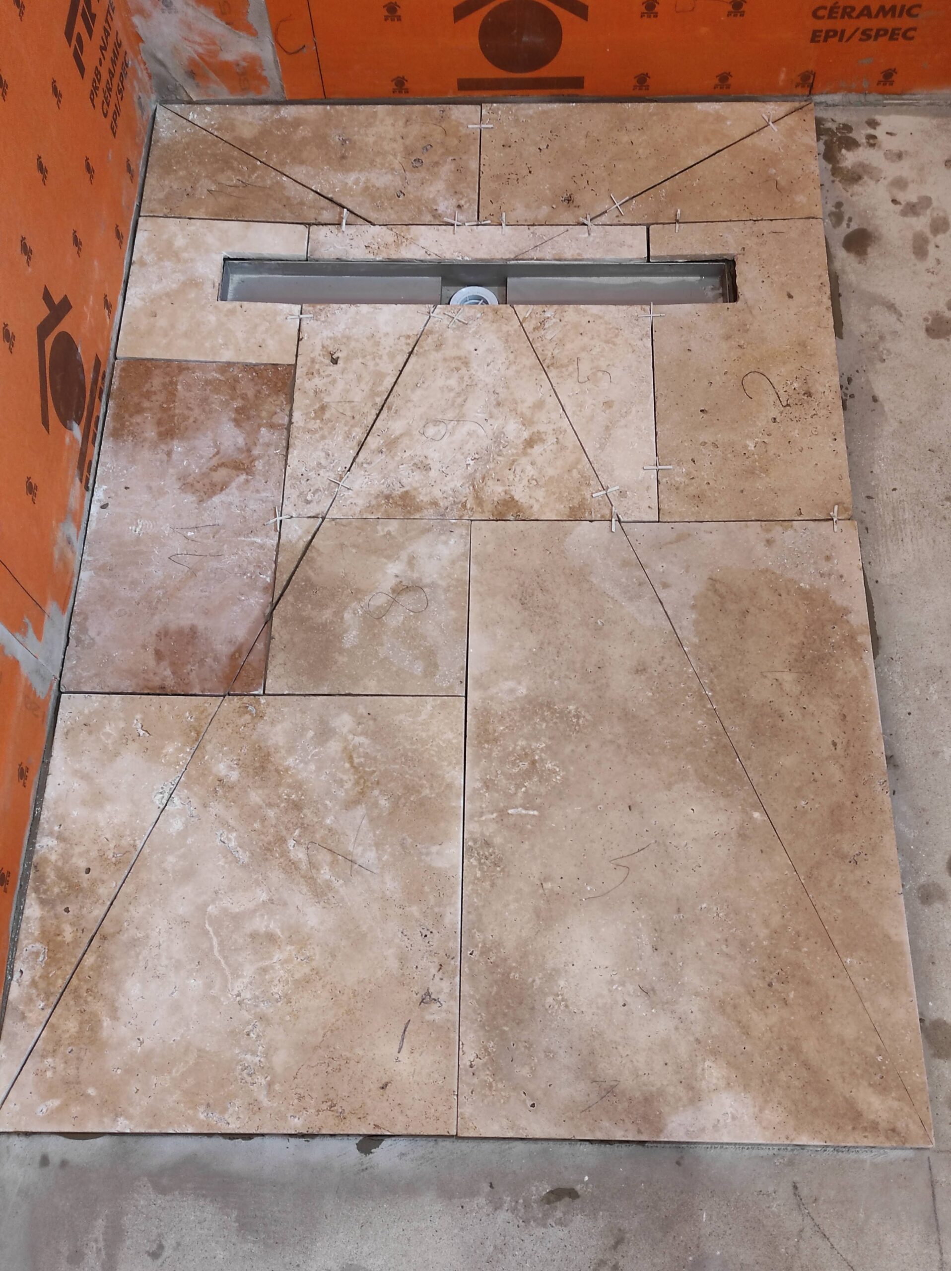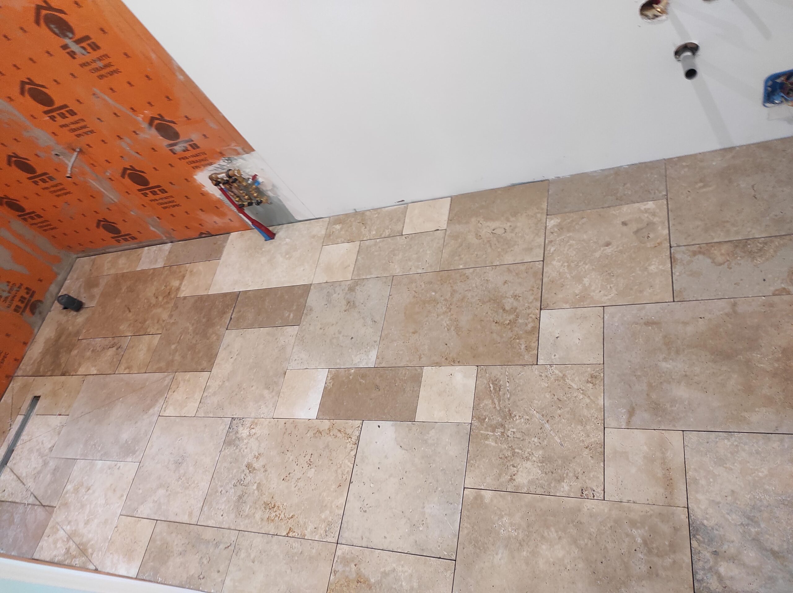 Création d'une salle de bain en travertin à Villandrault