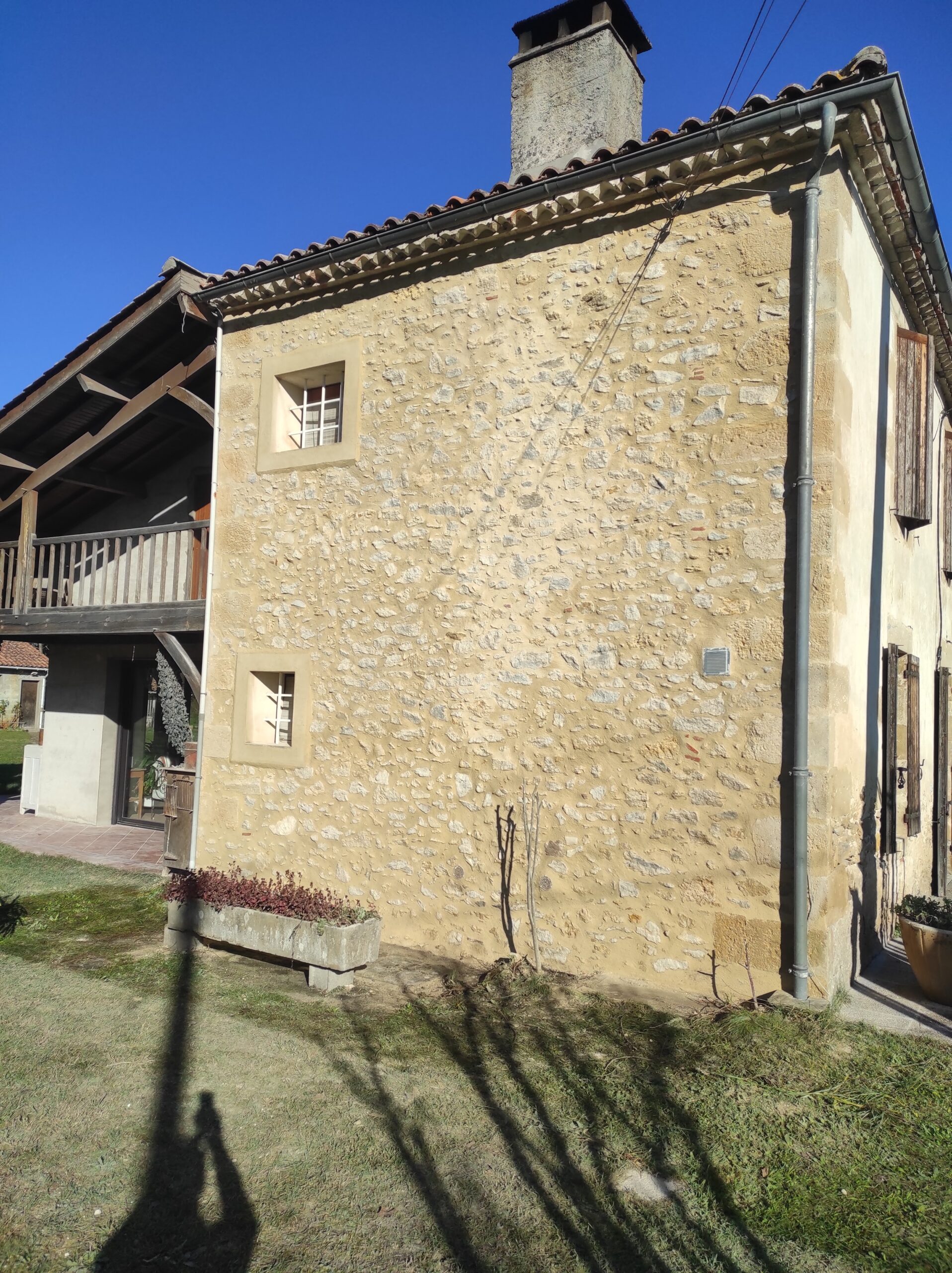 À Préchac, nous avons réalisé une façade en pierres apparentes, mettant en valeur l’aspect naturel et authentique du matériau.